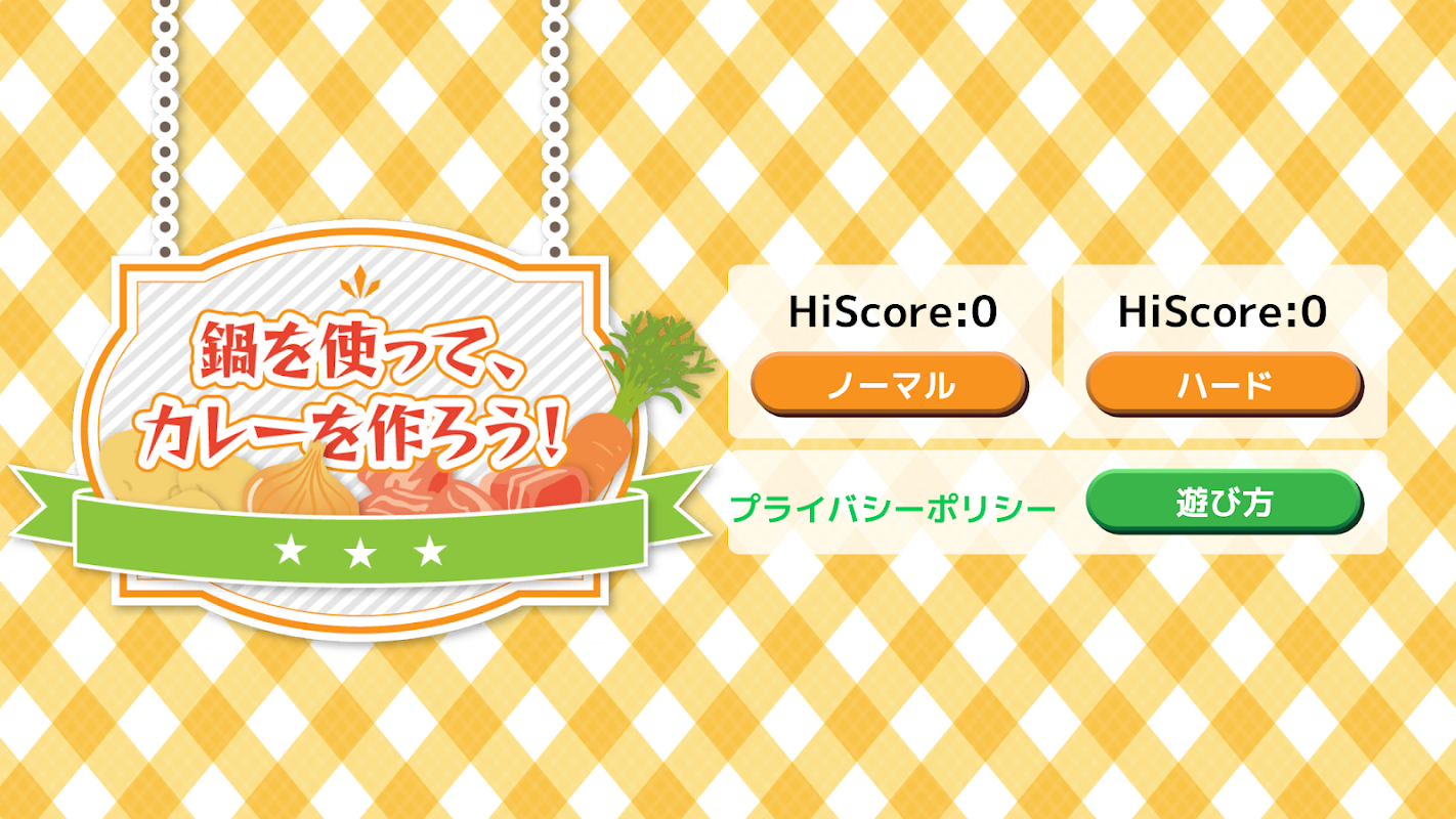 Bạn có thể chọn mức độ khó của trò chơi từ "Bình thường" và "Khó". Chọn mức độ khó phù hợp với bạn và nhắm đến điểm cao bằng cách chiên khéo léo các nguyên liệu cà ri!