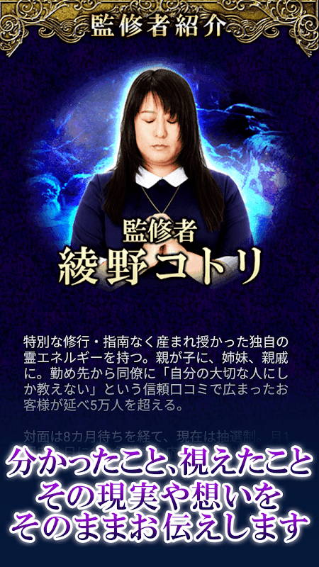 Thông tin APK 阿蘇小国郷の占い師【霊能者 綾野コトリ】
