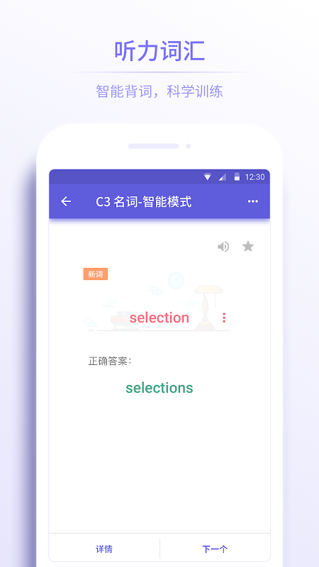 既保留了传统听写模式,又增加了优化后的智能模式——沉浸式学习,刷词效率高。拼错的单词即错即学,并根据记忆曲线反复出现,直到拼对为止。每次自定义要学习的单词数,一次学习即可掌握全部所选单词。