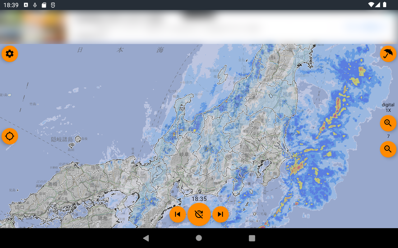 Nền không phải là dữ liệu bản đồ như Google Maps hay OpenStreetMap (được Yahoo sử dụng, v.v.), nơi các con đường được hiển thị dày hơn và dễ thấy hơn so với thực tế, mà dựa trên dữ liệu bản đồ từ Cơ quan Thông tin Không gian Địa lý của Nhật Bản, nên nó trông giống như một trường trung học cơ sở Cứ như thể radar mưa được hiển thị trực tiếp trên tập bản đồ!