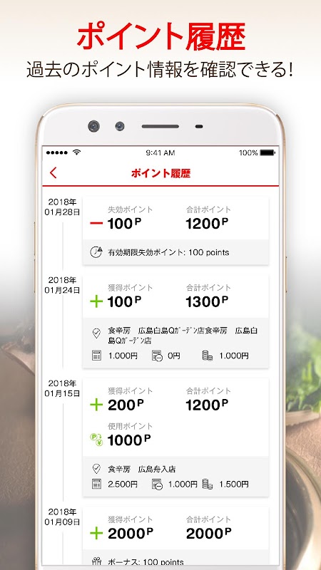 サービス利用金額に応じてポイントが貯まります。貯まったポイントはサービス対象店舗にて1ポイント=1円で利用できます。