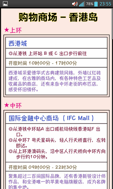这是一款方便想前往香港自助旅行的游客,能对香港的交通有初步的认识,提供正在安排自助行程的使用者参考,对香港的交通方式可以更轻松的上手!在旅游时也能即时查阅相关资讯、离线使用地图(因为包含许多地图档,导致程式大小较大,还请多多包涵,谢谢!)另外,使用者在观看地图时会出现放大缩小的按钮来调整大小,也可以直接用手指在萤幕上缩放地图的比例!
