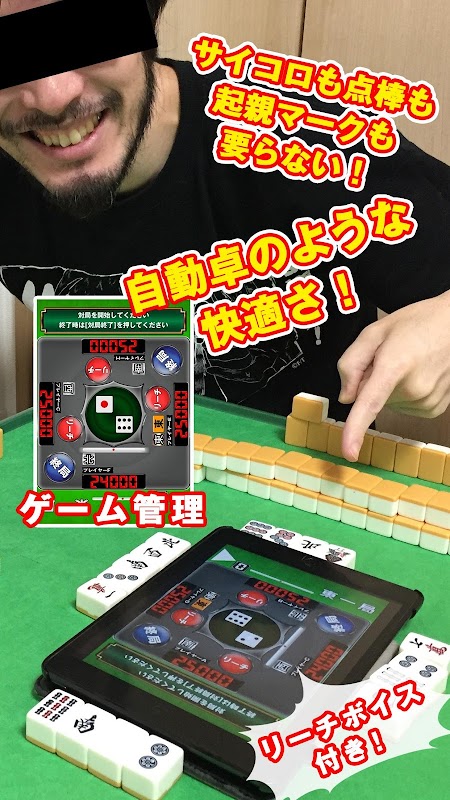 Làm cho mạt chược nạp bằng tay thoải mái hơn! Chỉ cần đặt ứng dụng này vào giữa bàn và bạn không cần xúc xắc, que tính hay dấu phụ huynh! Ứng dụng mạt chược dễ dàng tính điểm và ghi điểm!