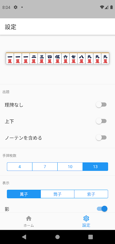 麻雀に出てくる一色手の多面待ちの練習ができるアプリです。