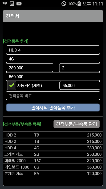 Giới thiệu về 견적서 - PDF파일 저장, 카톡/e-mail 전송