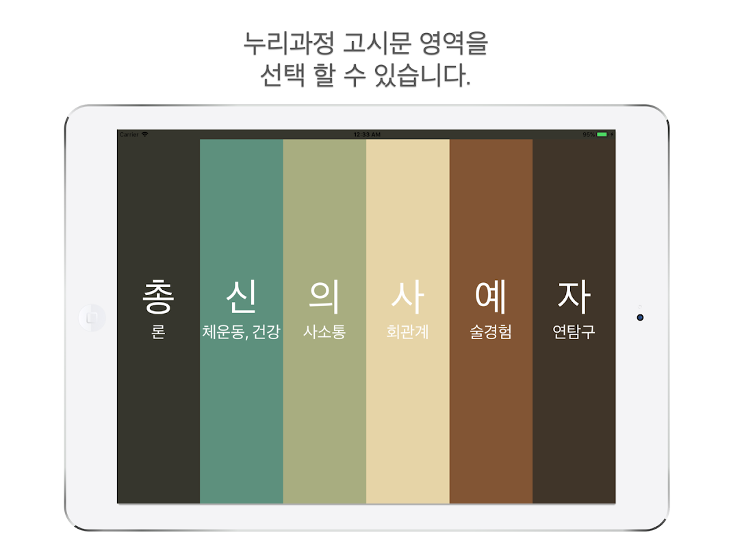 - 고시문 암기 : 각 5개의 영역의 고시문을 표로 재구성하였습니다.