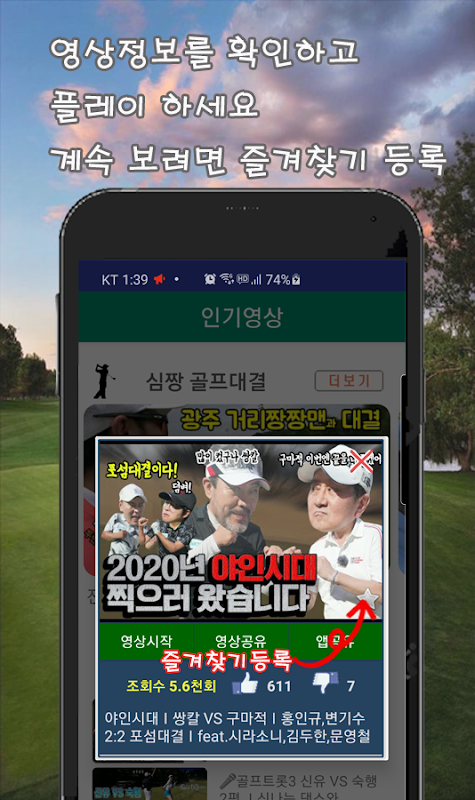 (인기영상, 골프뉴스,100타깨기, 싱글로 가는길,클럽별 공략 등)