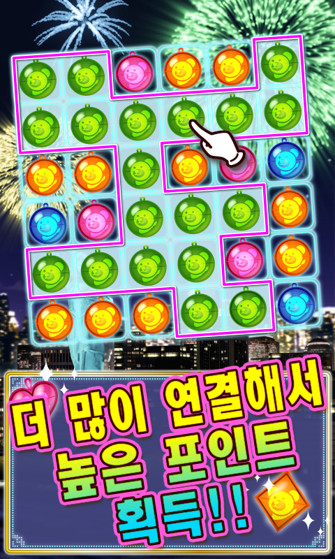 화약을 움직이며 한꺼번에 3개 이상의 화약을 모아 터치합니다.