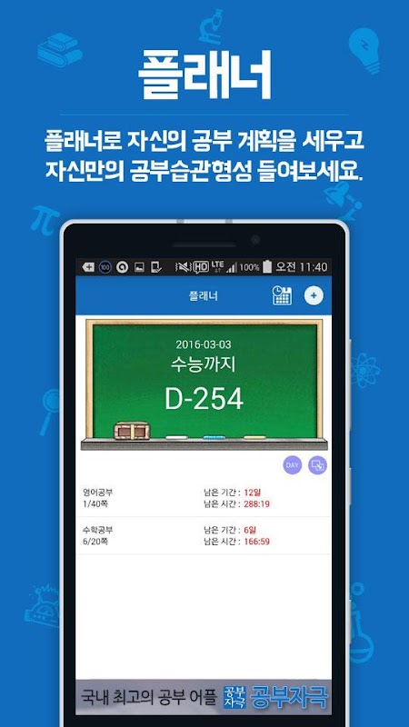 하루를 의미없이 보내지 마세요 공부자극은 좋은 공부습관을 만들어주는 어플입니다