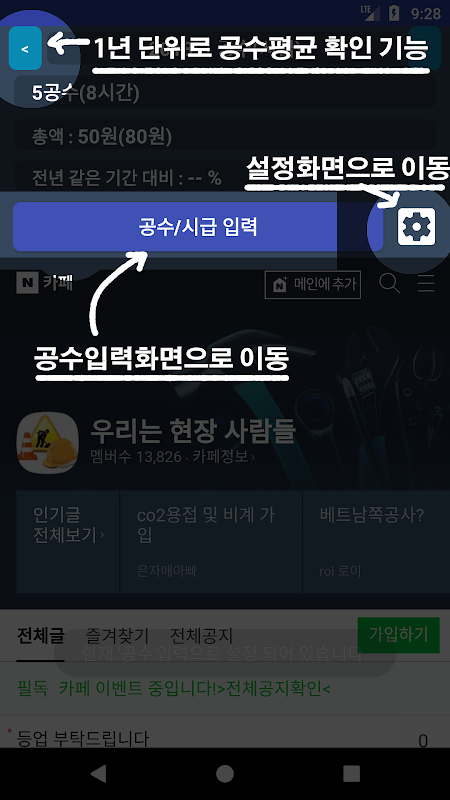 공수와 시급을 달력에 기입하여 자동으로 계산해 주는 앱입니다. 카페와 연동하여 유용한 정보와 푸시메시지로 취업정보를 받으실 수 있습니다.
