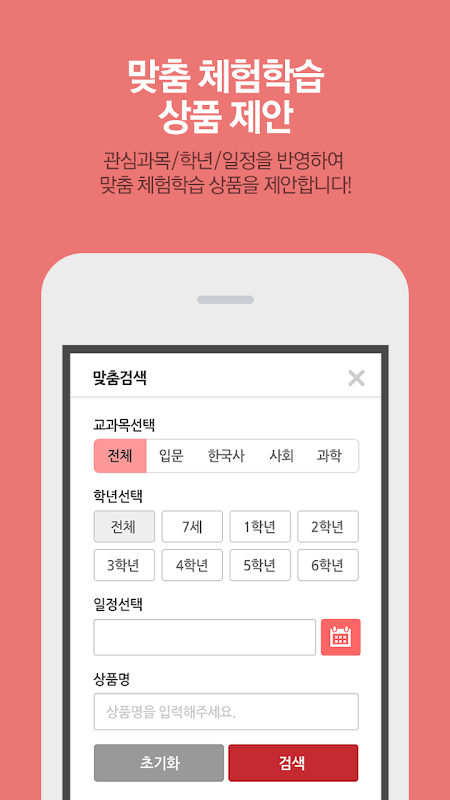 - 관심과목/학년/일정을 반영하여 맞춤 체험학습 상품을 제안합니다.