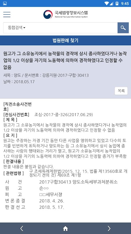 Ứng dụng trong hệ thống thông tin pháp lý quốc gia (txsi.hometax.go.kr) có thể được xem trên điện thoại di động