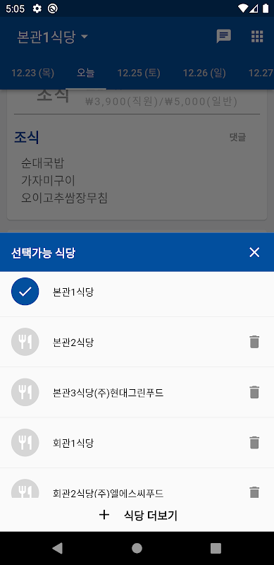 Thông tin APK 의사당대로 1번지 구내 식단표