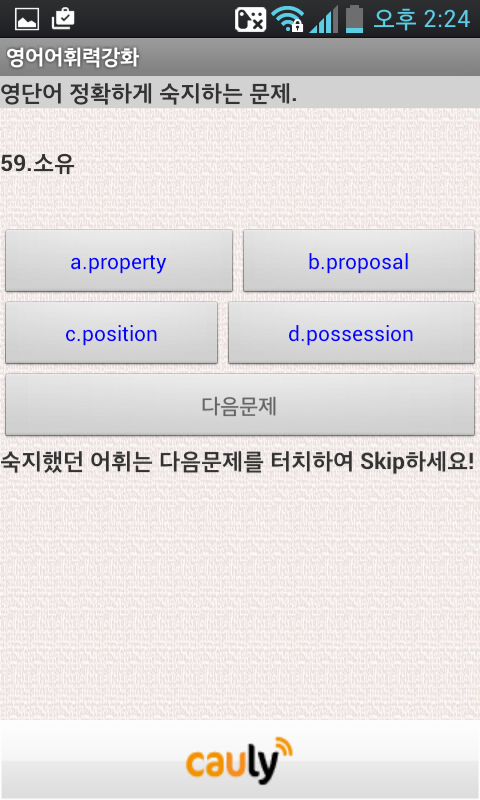 헷갈리기 쉬운 단어를 객관식으로 푸는 문제,영어 속담까지 공부할 수 있도록 하였습니다.