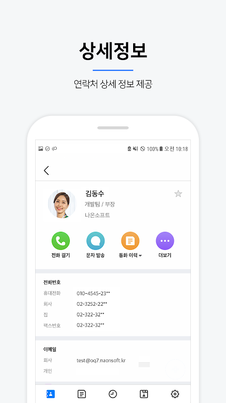 - Hiển thị ảnh, tên, chức vụ, bộ phận, thông tin công ty khi nhận/gọi điện mà không lưu trên điện thoại di động