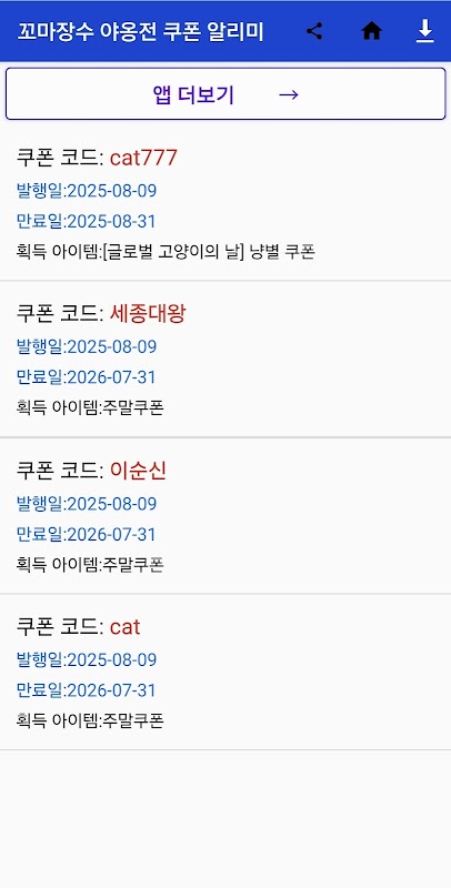 Phiên bản cũ của 냥냥 기사단 쿠폰 알리미