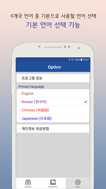 - 익숙하지 않은 외국어 어휘를 영어, 중국어, 일본어 번역을 통해 쉽게 이해할 수 있다.