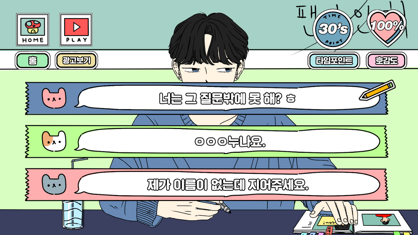 팬싸 시뮬레이션 게임입니다. 최대한 호감도를 올려 포스트잇을 잘 받아보세요!