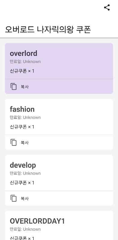 Thông tin APK 오버로드 나자릭의왕 쿠폰