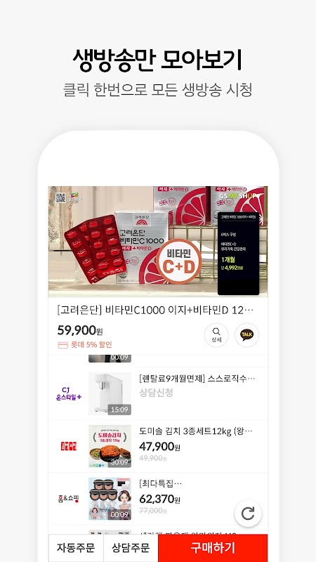 라이브홈쇼핑-TV홈쇼핑 최저가, 편성표, 생방송 알림 1.37.53