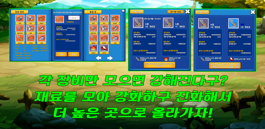 Thu thập trang bị mạnh mẽ để làm cho anh hùng của bạn mạnh mẽ hơn. Thể hiện sức mạnh chiến đấu tối thượng của bạn bằng cách phát triển và tăng cường trang bị của bạn.