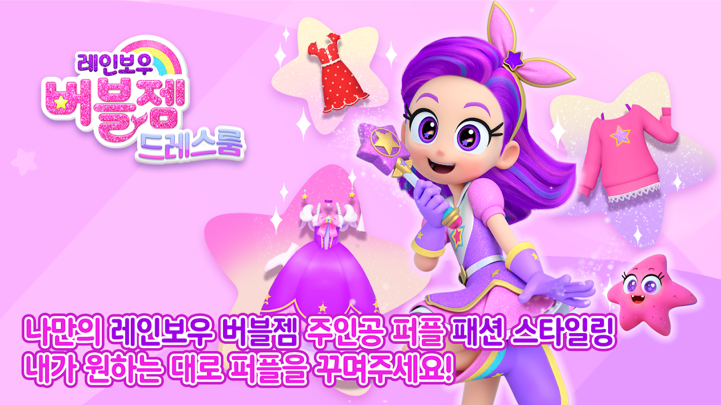 Bạn có thể tự do tạo kiểu cho anh hùng Princess Purple của Rainbow Bubble Gem theo nhiều kiểu thời trang khác nhau.