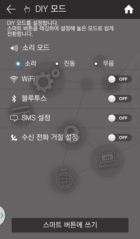 단추에 스마트폰 뒷면을 터치하면 스마트 NFC 앱에서 제공하는 다양한 서비스를