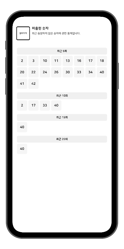 * 로또는 매회 독립확률이기 때문에 예측하는 것은 불가능합니다. 단지, 이 앱은 이미 정해진 데이터를 용도에 맞게 정리하여 살펴보는데에 도움을 줄 수 있습니다.