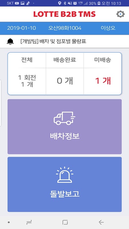 B2B TMS cho Lotte Mart được phát triển bởi Lotte Logistics Bài viết giao hàng tạm thời Ứng dụng di động