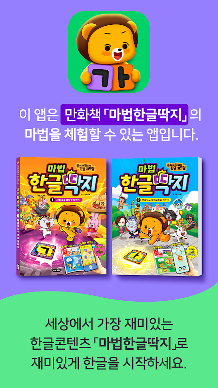 Ứng dụng này là một ứng dụng để trải nghiệm sự kỳ diệu của Hangeul trong truyện tranh ⌜Magic Hangeul Ticket⌟.