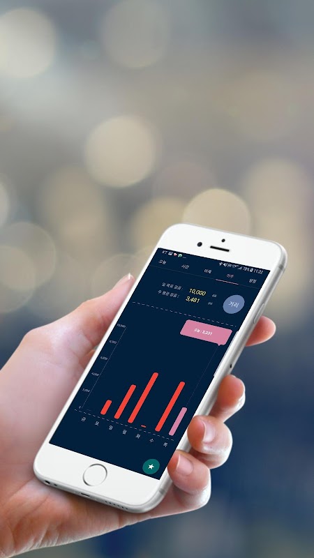 - 일단위의 걸음수를 그래프로 처리하여 한눈에 볼 수 있도록 명확하게 표시합니다.