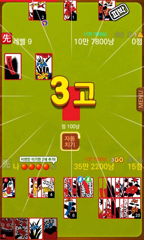 맞고2017은 이길 때마다 2배씩 보너스배수가 누적되는 신개념 싱글 고스톱 게임이에요.