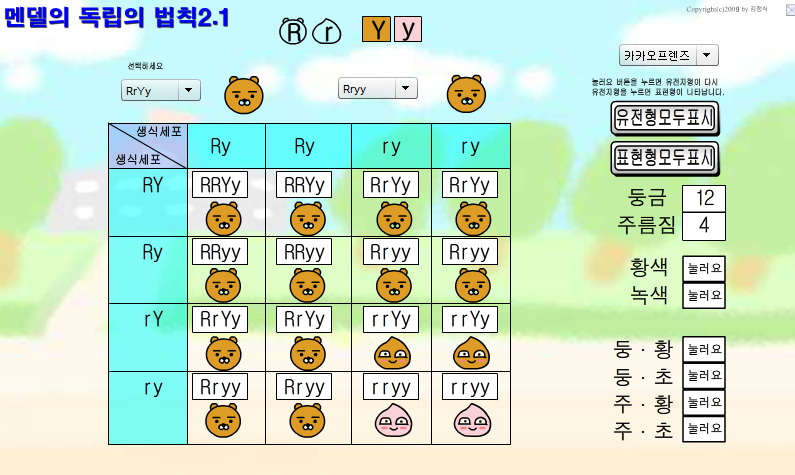 멘델의 독립의 법칙 가상실험 1.0.2