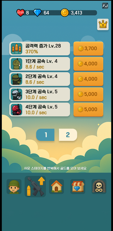 Vượt qua màn chơi bằng cách nâng cấp lên vàng.