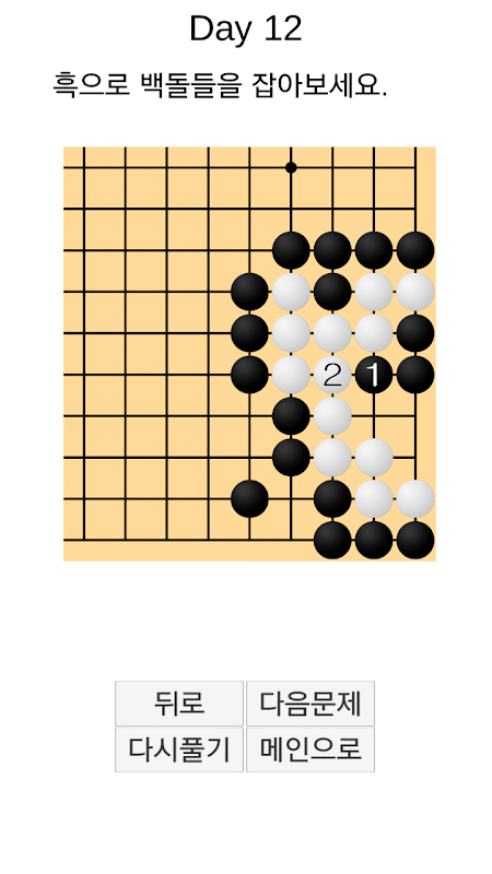Chúng tôi thực hiện các bài toán như cung đường đen, đường đen cát trắng, đường đen lớn và bàn tay đường đen, và trong khi giải các bài toán, chúng tôi thực hành cách đọc số cơ bản của cờ vây và tìm hiểu sự sống và cái chết của đá.