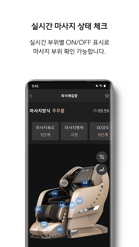 Thay đổi trạng thái của ghế massage, chẳng hạn như cường độ và vị trí massage, thuận tiện trên thiết bị di động