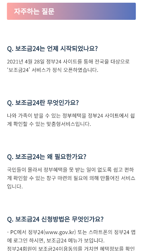 Thông tin APK 보조금24 지급가이드 - 신청방법, 자격확인, 지급정보