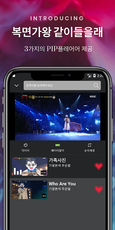 역대가왕 노래들을 손쉽게 한번의 터치로 연속재생할 수 있습니다.