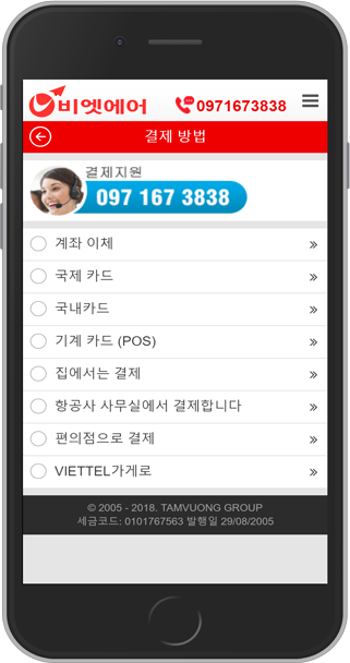 VietAIR 는 핵심 가치, 환벽한 풀질, 최고의 서비스 제공 방침으로 고객님께 보답하겠습니다.