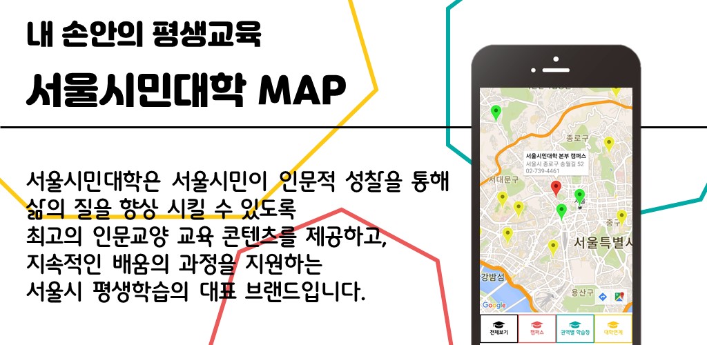 Nó cung cấp thông tin vị trí trong khuôn viên của Đại học Công dân Seoul, các trung tâm nghiên cứu theo khu vực và các tổ chức cao đẳng công dân được liên kết với các trường đại học.