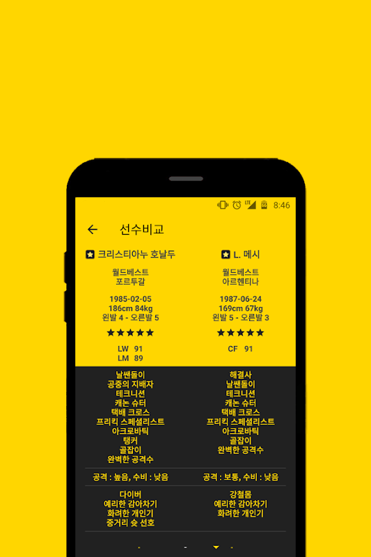최신선수정보를 검색, 비교 할 수 있습니다.