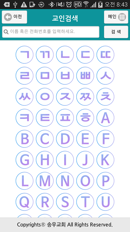 이름, 전화번호, 초성, 성별 등 다양한 검색 기능을 통해 찾고자 하는 구성원의 정보를 쉽고 빠르게 확인할 수 있습니다.