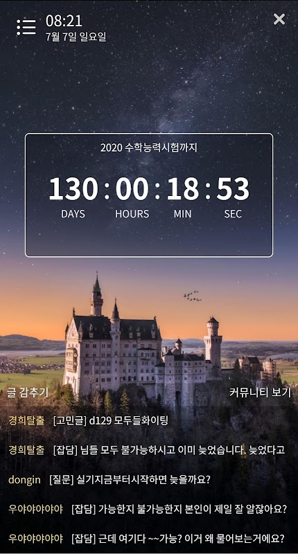 - 켤때마다 수능 남은 시간을 보여드려요.