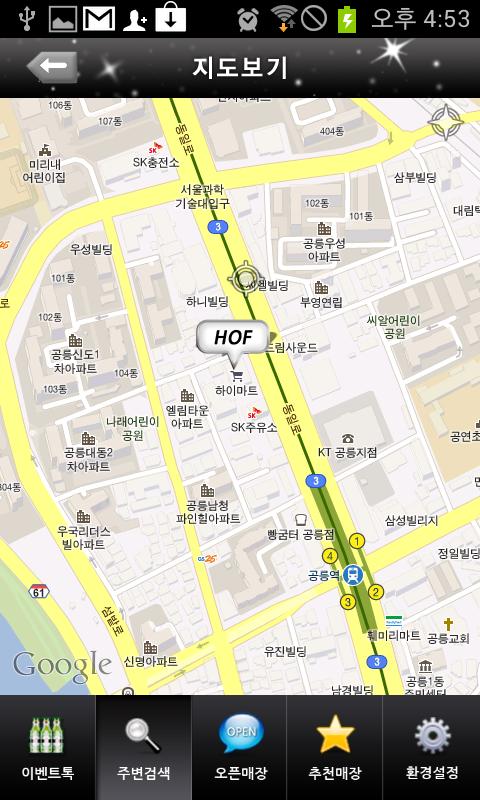 위치기반 서비스를 이용한 전국 방방곡곡의 술집정보와 위치를 제공하는 어플 "술찾사"입니다.