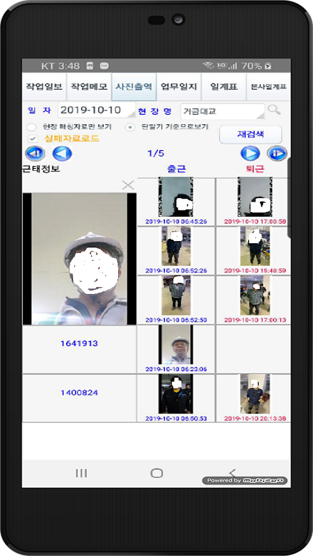 3.위치기반 근태기록,사진전송 확인기능으로 일용직및 직원근태관리