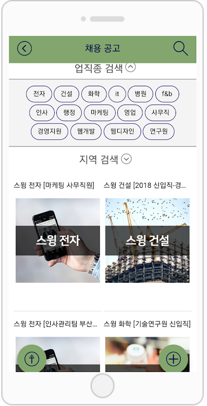 앱제작 서비스 '스윙'으로 제작한 스윙 채용 샘플앱