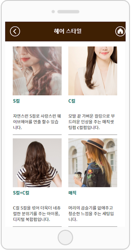 스윙투앱으로 제작된 헤어샵 업종 샘플앱입니다.