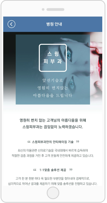 앱제작 서비스 스윙으로 제작한 스윙 피부과 샘플앱