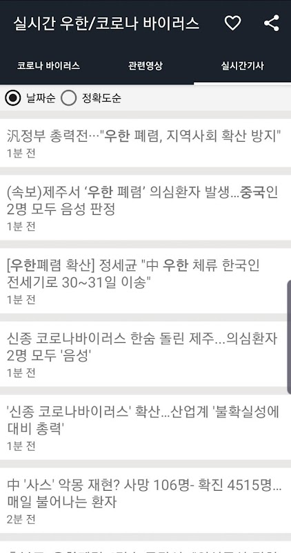 코로나 바이러스 , 중국 우한 발병한 바이러스에 관련된 기사와 유튜브의 내용을 실시간으로 제공하는