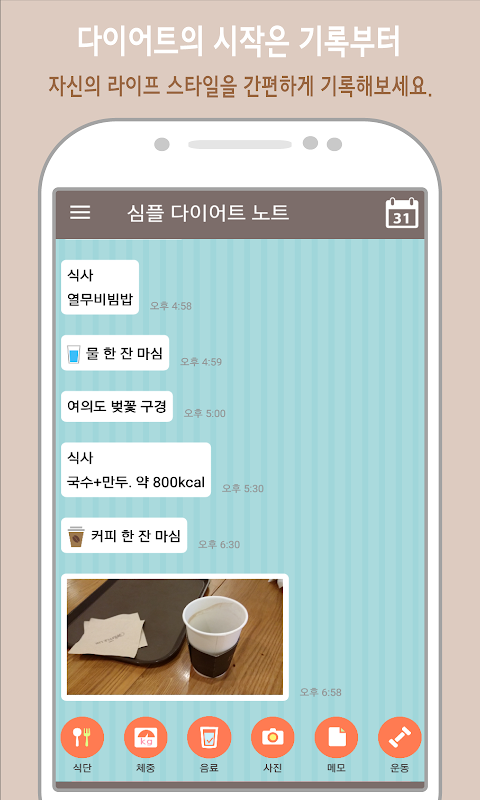 Dễ dàng ghi lại một loạt các thông tin liên quan đến chế độ ăn uống như chế độ ăn uống và tập thể dục, trọng lượng và kiểm tra lịch.